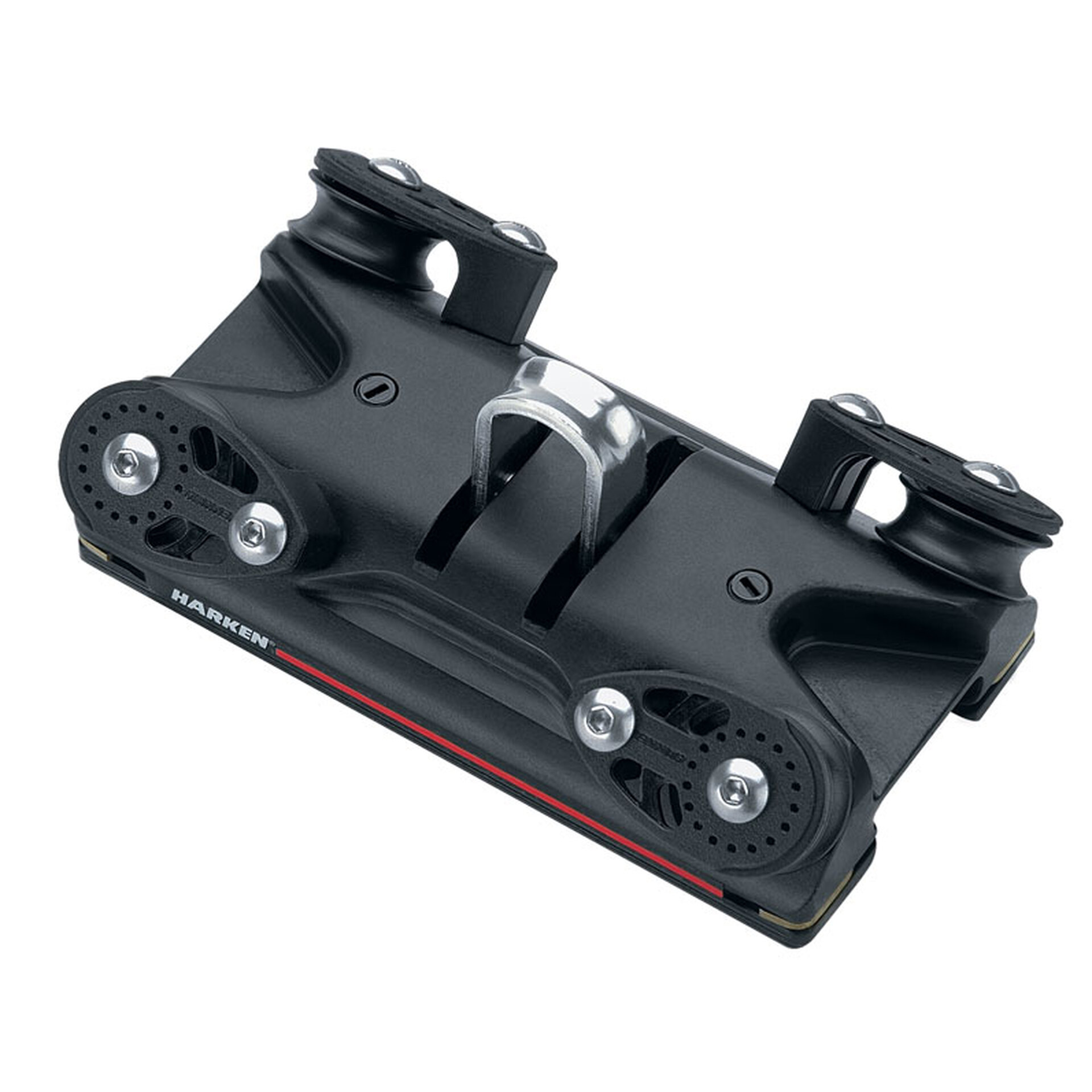 Meta Description: Harken CB traveler cars feature recirculating ball bearings for easy mainsheet adjustment under load. Bearings are captive for easy maintanence.